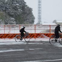 (校庭の雪 半分まで解けました) (保体科 持久走風景)