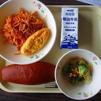 (今日の給食 野菜コロッケ 他) (お昼の空模様)