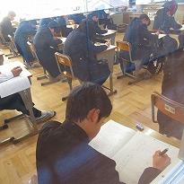 〇実力テストに挑戦・・・・・・2年と1年は1年先、2年先の県立高一般入試に備えて、シュミレーションの意味もあり、校内「実力テスト」(5教科)に挑戦していました。