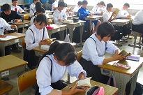 〇教育実習生 道徳の研究授業を実施・・・・・・②校時、1年1組で矢野先生が「道徳」の研究授業を行いました。
