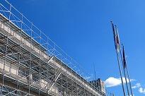 〇大規模改修工事は雨の影響で・・・・・・今日は雨が降ったり止んだりの天候だったので、安全面を考慮して「足場組み」は行いませんでした。