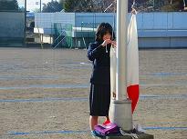 (国旗・町旗・校旗掲揚の生徒会役員) (日中の青空)