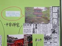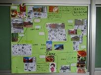 (2年教室廊下壁の掲示 京都の名所や旧跡、美味しい食べ物マップ)