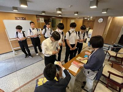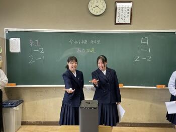 本日の読書の時間に、今年度の体育祭における「組み分け抽選会」が行われました。その模様はオンラインで各クラスに中継され、時折、どよめきが聞こえてきていました。