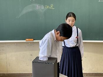 生徒会役員と本日は3年1組がコラボし、東西生徒昇降口および東小学校の児童昇降口の前で「あいさつ運動」が行われました。毎週水曜日の朝に、各クラスのローテーションで実施されます。明るい挨拶は人とのコミュニケーションの第1歩。これからも積極的に活動してまいります。