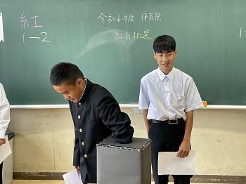〇 体育祭実行委員長&副委員長による抽選会の説明(くじを引く順番は、事前にジャンケン大会で決定)