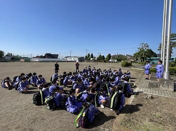 本日、東小学校との合同避難訓練を実施しました。模擬火災の出火場所は北棟の調理室。先生方の指示に従い、児童生徒が校庭南側の部室前に避難完了するまで4分13秒でした。真剣な態度で無言避難はできましたが、次回は安全に配慮しつつも更に時間短縮を図りたいと思います。
