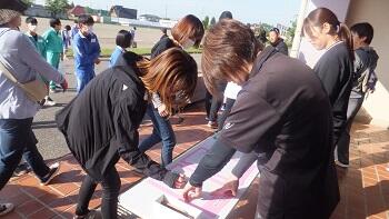 6月1日(土)に本校の美術部員は、部活動の一環で作成した「鶴の折り紙付き箸袋」を、さくら市のある飲食店へ贈呈してきました。この飲食店は元々高根沢町にお店がありましたが隣町に移転したそうです。本校の教職員がよくお弁当の注文等でお世話になることが多く、届けられたお弁当の箸袋の端が折鶴になっていたのを美術部顧問が部員に紹介したところ、創作意欲をかき立てられ、このほど200袋程を日頃の感謝を込めて贈呈したのだそうです。学びの場は、授業以外にもいろいろあるものですね。