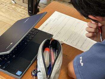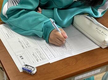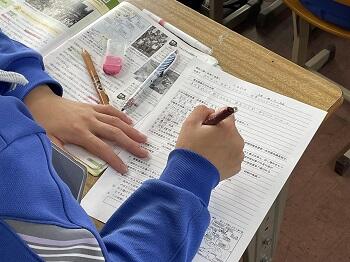 お留守番の3年生は、授業の合間に修学旅行のまとめにも黙々と取り組んでいました。