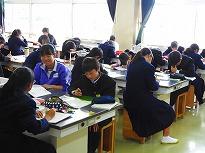 ●今回の「実力テスト」では、3年生は皆、真剣で、一人ひとり目の色が違っていました。 「三者面談」前、「私立の受験高」決定前で、これまxでの受検勉強の成果を発揮するテストになりました。