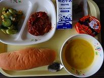 (10月31日 ハロウィンで、給食もハロウィンバージョン)
