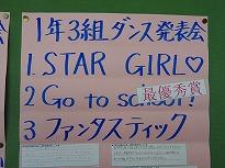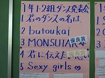 (1年生保体科のダンス発表会の結果が掲示されていました)