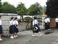 登校については、片側歩道の道路であり、「右側の歩道」を自転車が通行した方がより安全だと考えます。新道交法改正で、自転車は左側通行となっていますが、この県道の山道、坂道の登校時については、「右側の歩道」を一列で登校するよう、親からもお話ください。