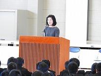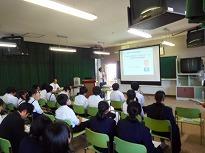 ●DVD視聴後、さくら産院の助産師 齋藤さんから赤ちゃん誕生のや出産のようす、赤ちゃんを産んだ母親の話などを15分ぐらい、話していただきました。 産婦人科病院で、日々実体験している「リアル」な話を生徒たちは真剣に聞いていました。