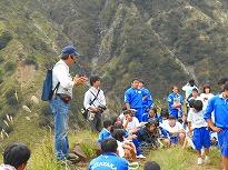 ●生徒たちは、ボランティアの方々の案内をいただきながら、植樹をする山に登り、斜面にスコップで穴を掘り苗木を植え付けました。