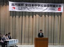〇高円宮杯中学生英語弁論大会・・・・・・今日、県総合教育センターで、県内各中学校から40名の生徒が集まり、「英語弁論大会」が開かれました。
