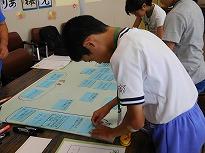 〇1年は職場見学のレポート発表会・・・・・・夏休み中に「職場見学」をしたレポートを作成し、今日の午後、クラスごとに発表会をしていました。