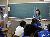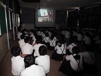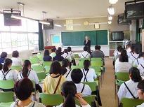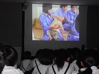 ●DVD視聴後、さくら産院の助産師 齋藤さんから赤ちゃん誕生のや出産のようす、赤ちゃんを産んだ母親の話などを15分ぐらい、話していただきました。 産婦人科病院で、日々実体験している「リアル」な話を生徒たちは真剣に聞いていました。