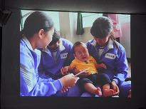 ●振り返り体験の内容は、最初に編集された「赤ちゃんとのふれあい体験のようすの編集VDV映像」を約30分で視聴しました。 生徒たちが赤ちゃんを抱いていたり、ミルクを与えている写真などの100枚以上の写真とコメント(テロップ)が映像で流れました。 BGMも工夫され(AKBの曲など)、私は写真とコメントと見ていて赤ちゃんの表情や母親の笑顔、生徒の表情に感動し、目頭が「うるうる」としてきてしまいました。