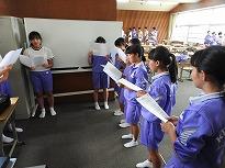 ●最後に、各学年代表1名が、1学期の反省についての作文発表を行いました。 ******生徒会役員4名、そして「HAPPY北中応援歌」を歌ってくれた女子テニス部には大変お世話になりました。