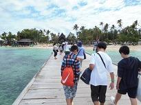 〈町中学生海外派遣事業4日目その2「マナ島の浜辺で海水浴」〉 「自然環境プログラム」が終了した午後は、生徒たちが楽しみにしていた「海水浴」です。