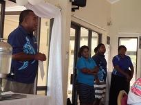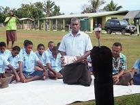 挨拶をしていただいた方は、コミッション・ウエスタンという役職のManasa Tagicakbacさんでした。フィジーを4地区に分割した西地区の代表者(知事)という方でした。 団員と一緒に食事をとっていただこうと考えていましたが、「次の用事がある」ということで挨拶後、帰られました。