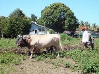ここでは、農場内の動物(豚、鶏)や農場(牛で開墾する様子、堆肥の有機化など)の作業の様子を歩いて見学しました。