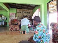村とイメージではなく、小ぎれいに平屋の家が並んでいました。家の周りの草刈りもしてある村でした。 3日目にナンディの町で買った「スル」をスカートのように腰に巻き付け、村長宅に入りました。 ひげをはやしたやさしそうなおじいさんが座っていました。