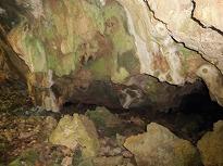 「洞窟」の中に入ると広い4畳ぐらいのスペースがあり、その奥には体を小さくすれば通り抜けられる穴が、約40m(海の近くまで)続いているそうです。 珊瑚礁が死んで固まって石になったものが、海岸の隆起で出来た「洞窟」のようです。