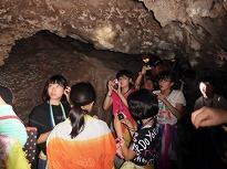 〇「洞窟探検」・・・・・・海岸から、歩いてジャングルを歩いていきました。トレー村が以前、あった山奥まで歩くことになりました。蟻や虫に刺される団員もなく(?)、「洞窟」に到着しました。