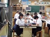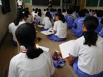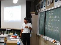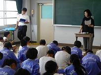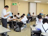 その事前指導を6校時、視聴覚室で行いました。 生徒たちは,資料を見ながら菊地先生の話を真剣に聞いていました。