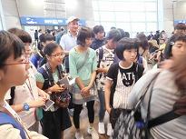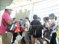 入国審査では、パスポートと各自記入した「入国カード」を係員に見せます。係員によって、何も言わないでハンコを押してくれたり、「旅行の目的は?」とか「引率の先生は何名ですか?」などと英語で質問してくる人がいました。団員生徒たちは、ちょっとドキドキして審査を受けていました。