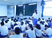 パソコンのプレゼン画面を見ながら、NPOの環境団体の方から英語と日本語で、「ウミガメ」と「珊瑚」についてのレクチャーをいただきました。 日本語の通訳があり、助かりました。