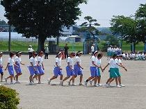⑥校時の後半から、パラパラ細かい雨が降ってきましたが、1年生は少し濡れた程度で、練習を終了することができました。