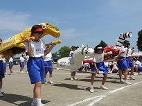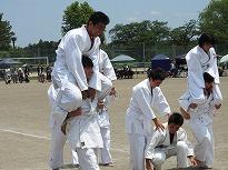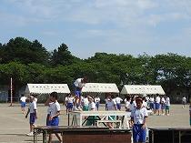 〇体育祭全体練習・・・・・・今日の午後、⑤校時、⑥校時を使い、「全体練習」を行いました。全体での練習は今日がはじめてです。 「開会式」「閉会式」「開会式への入場」「準備体操」「綱引き」「まり入れ」「騎馬戦」なの練習を行いました。