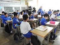 〇落ち着いて授業に参加・・・・・・今日は日中、3回、校舎内を回って授業のようすを見せていただきました。 1年生は、欠席「0」で、どの生徒も教科担任の話に耳を傾け、3分の1ぐらいが挙手をして発表していました。 小学校からの学習訓練ができている1年生は、発表する友達の方を顔を向けて聞く体勢ができていて素晴らしいと感じました。