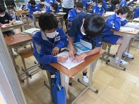 第1学期終業式後、全クラス学級活動で通信票を渡していました。1年生にとっては初めての通信票です。様子を少しだけ見てきました。ちょっとだけ緊張している様子でした。