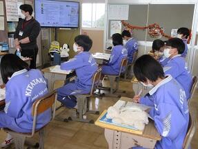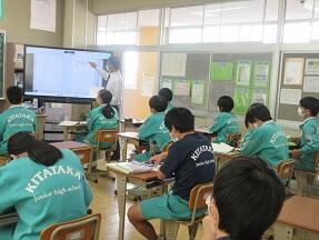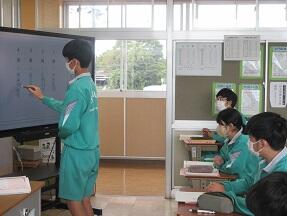 中国・四国地方で、自分が調べたことを発表シートにまとめ、タブレットで画面共有をして発表していました。