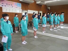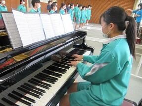 全体の響きに気をつけて、合唱練習を行っていました。少しずつですが声が出てきているように感じます。