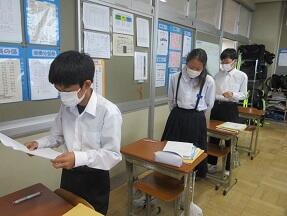 今日の放課後、全クラス一斉の合唱練習を実施しました。完成度はクラスによってまちまちですが、どのクラスも真剣に練習に取り組んでいました。3年ぶりの町民ホールでの開催になります。とても楽しみです。