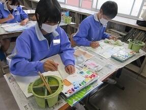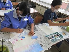 水彩画(風景)で、私の表現で彩色する活動が展開されていました。