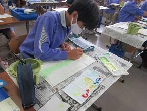 空想画で、私の彩色をしようというめあてで活動が進められていました。
