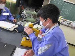 葉を顕微鏡で観察し、葉のつくりやはたらきについて学習していました。
