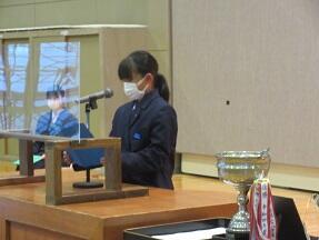 本日、地区英語スピーチコンテストに本校からも各学年代表生徒が参加しました。3名ともとても緊張した様子でしたが、今までの練習の成果を十分に発揮できたように感じました。