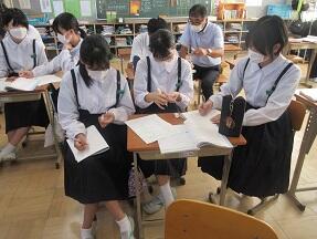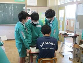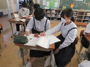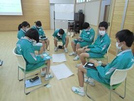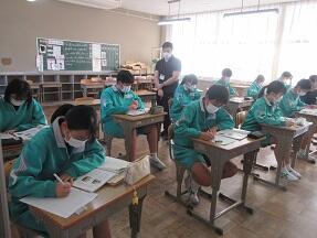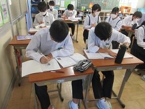 「幸福」をテーマに議論のポイントを考えさせる授業でしたが、なかなか難しい単元ですが、生徒たちが気づくのを辛抱強く待っている授業でした。
