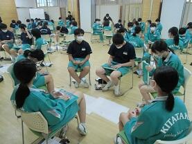 今日の5、6時間目に3年生が外部から講師を招いて、「にこころの健康づくりセミナー」を実施しました。目的は、生徒が自分自身の心の健康状態を保ちつつ、家族・友人・知人等と接する中で、悩みを抱える人のサインに気付き、必要なときに声をかけて話を聞き、適切な支援につなぐことができるようにすることです。3年生の先生方から生徒たちにとってとてもよい機会になったという報告を受けました。