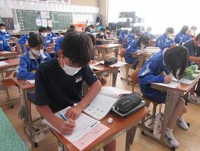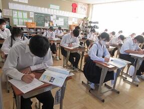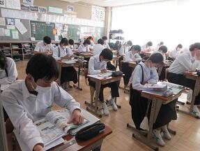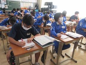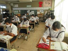 今日の5、6時間目に、3年生と保護者を対象に私立高校説明会を実施しました。3年生はもうすぐ私立高校の志望校を決定しなくてはなりません。みんな真剣に説明を聞いていました。校長あいさつで伝えたことは、「行ける高校でなく、行きたい高校に入学できるように、最後まで頑張れ。」です。