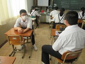 集団的自衛権について賛成か反対かを考えて発表する授業が進められていました。