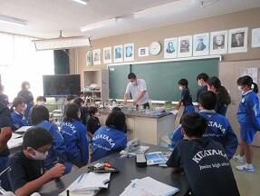 酸素と二酸化炭素を発生させて、その性質を調べ授業が展開されていました。実験画のねらいが明確になってみんなで実験に取り組んでいる授業でした。