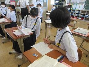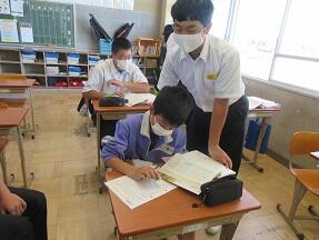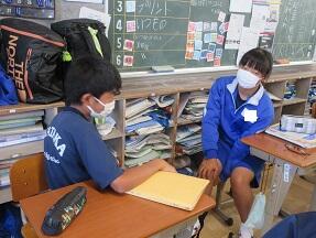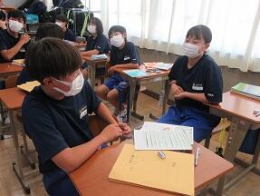 連文節のプリントを解いてから、周りの友達と答えを確認し合っていました。
